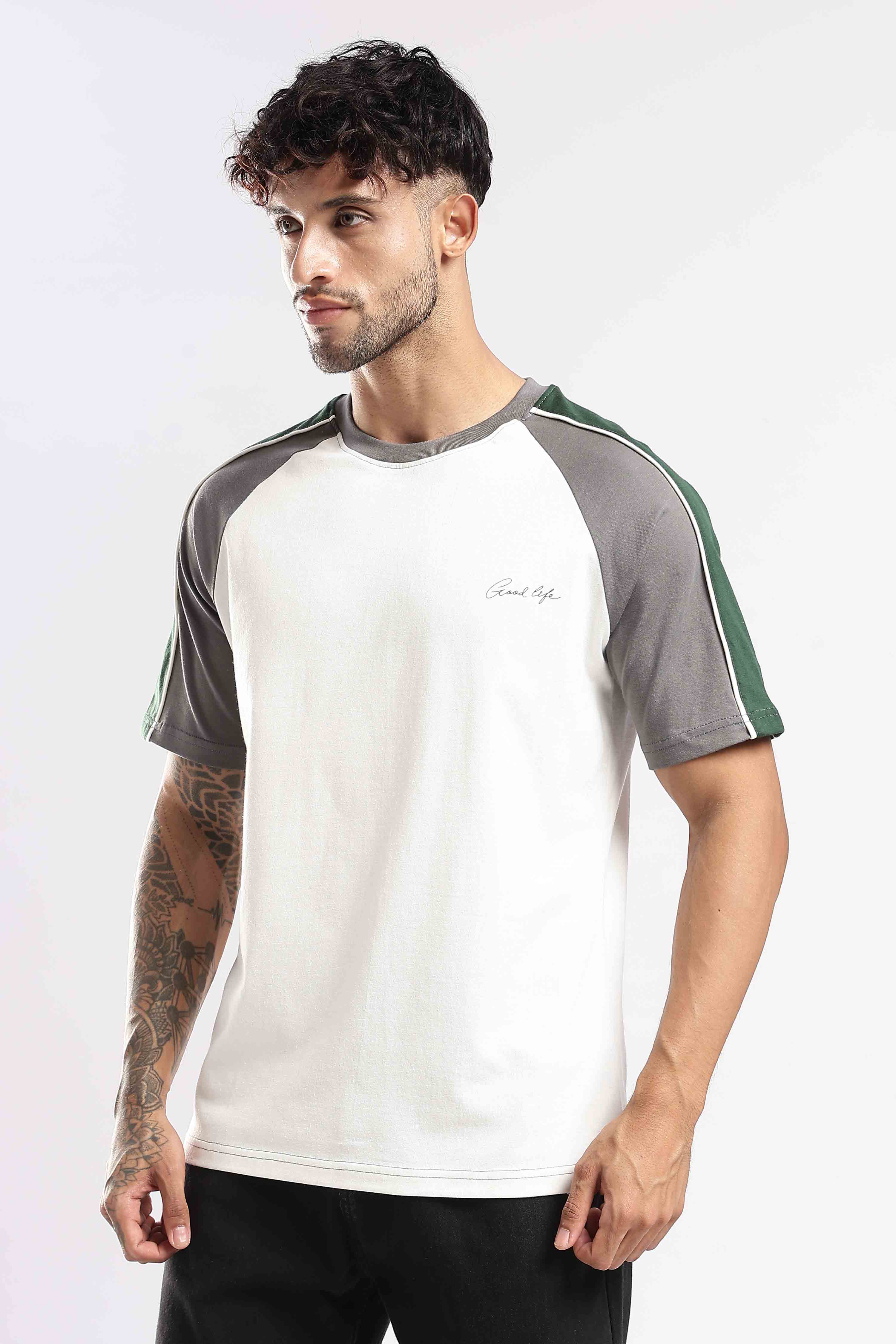 xStep into effortless style with the Good Life Contrast Raglan T-Shirt — where comfort meets confidence. Designed with a clean white body, grey raglan sleeves, and a deep green shoulder stripe, this tee brings a bold yet minimal aesthetic to your everyday fit. Made from premium soft cotton, it keeps you cool, comfortable, and ready to take on the day. The subtle “Good Life” chest print adds a refined touch, reminding you to live with purpose and style.